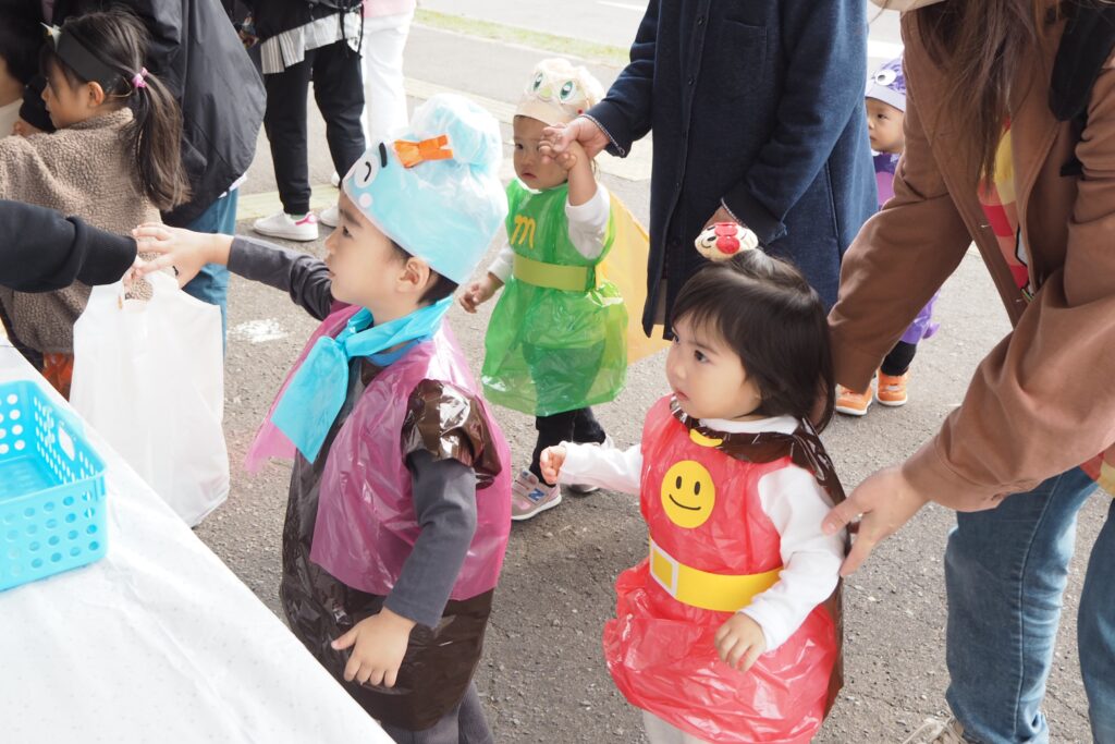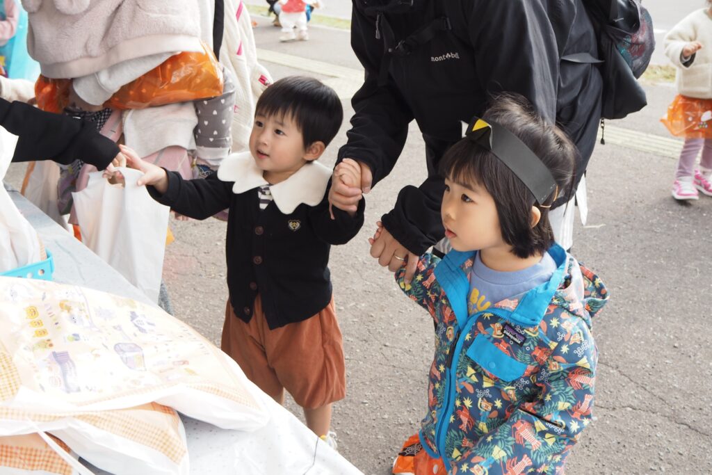 職員からお菓子を受け取るたびに、子どもたちのキラキラした笑顔があふれ、その明るい姿に私たち職員もたくさんの元気をもらいました。